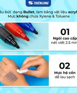 Viết đậm, màu sắc tươi sáng, nhanh khô và dễ xóa sạch.